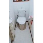 トイレタンクからの水漏れが確認できたため、トイレ交換と同時にクッションフロアの張替を提案させていただきました。 LIXIL(リクシル)アメージュZ便器(リトイレ)へ交換させていただきましたが、このトイレは、便器がフチレス形状で、奥も手前もフチを丸ごとなくし、お掃除が楽な点が特徴の商品です。 クッションフロアも張り替え、明るいトイレに生まれ変わりました。