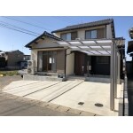 門扉と段差のあるアプローチのを取り払い、駐車スペースを確保し、すっきりした外構にしました。