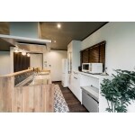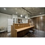 必要なのは水回り・寝室・LDK、そして収納スペースのみ。広さを利用してウォークスルーのクローゼットを計画し、建物強度を保ちつつゆとりある配置をご提案しました。広いリビングには高機能の床材を採用。ワックス不要、抗菌、耐汚、耐擦り傷、水に強く、床暖対応とお手入れレスで快適です。一方、寝室は心地よさを優先して無垢フローリングを採用。ローズウッドの色幅をランダムに配した個性的な床材に、壁は黒と白。色味の似ている木目をドア、天井に配し面積のバランスをとりました。設備は内装共にお手入れの楽なものを選び、色調を統一。クローゼットは寝室側に衣類、洗面室側にサニタリー、ストックと用途を分けて収納できるようにしました。 特徴的なのはリビングの窓。天井近くの窓は部屋の奥まで光を届かせ、床際の窓は床面を照らすことで室内の暗さを緩和。全てペアガラスで断熱性を高め、換気できるよう一部を開閉可能にしました。ダークトーンでありながら木質系の素材なので冷たく感じさせません。アクセントで使ったデザインタイルがダイニングの空気感を変え広さによる単調さを解消しています。