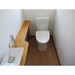 空間も広々で横に幅広のカウンターが付いた事で立ち座りも楽になり、洋式トイレですので子供から年配まで安心して使えるようになりました