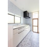 キッチンはTOTOのザ・クラッソでプランしました。使いやすさや収納のほか、全体的なデザインも気に入って頂き、白い木目のパネルをセレクト。壁はブルーのタイル調のパネルで覆い、西洋白磁のマイセンを思わせるインテリアになりました。