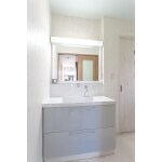 廊下からキッチンへと続くレイアウトを区切って、広い洗面所を再設計しました。玄関からまっすぐキッチンには行けなくなりましたが、洗面化粧台は大きなものを設置でき、トイレや浴室へのアクセスも容易になりました。