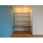 収納の大きさによってサイズ調節できる可動棚と、安定感のあるカウンター材で、広々としたスタディーコーナーになりました。クローゼットの奥まった部分を利用することで、オープン空間ながら、作業に集中できるスペースを実現できました。