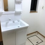 スッキリとしたデザインが素敵な洗面化粧台に交換しました。 壁や床も張り替えてきれいになり、洗面所全体が清潔感のある空間になりました。お客さまからも「クロス交換もいっしょに施工してもらって良かった!」とお喜びいただけました。