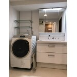 少し大きめの引出式の洗面化粧台を取り付け、収納力が上がりました。