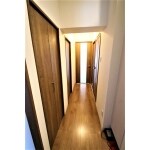 フローリングと建具をチェリー柄で統一された廊下は、明るく、素敵な空間になりました。