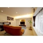 構造上袋小路の洗面室は洗濯における動線が悪くキッチンやバルコニーに出るにも不便でした。そこで収納の充実、使い勝手の改良を兼ねて通り抜けできるクローゼットをご提案。南東の部屋には扉を2箇所設けてアクセスを多様化し、バルコニーへの出入りをスムーズに変えています。洗濯物もバルコニーからクローゼットへストレート。しまうにも手間いらずです。広がりを出すための工夫として、LDKには奥行きを演出。TVボードは凹ませて左右に間接照明を設け、背面にアレンジした木のタイルの質感を強調。対面するダイニングには家具の色に合わせたアクセントクロスを配置。伸びやかな空間となったLDKにバランスよくアートを飾られ、広いスペースをまるでギャラリーのように演出されました。
