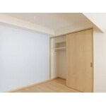 床材を明るい色に変更したので、全体的に明るい印象に。壁のクロスはアクセントで淡いブルーのクロスを施工しました。