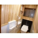 大工型工務店として、腰板の部分は掃除が楽に出来るパネルを張り、その上の部分は杉板を張り、木を沢山使う事により 暖かみの有るトイレを提案させて頂きました