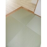 これまでとは異なる半畳フチなしの畳をチョイスしました。 淡いグリーンの畳が、リビングの明るいフローリングにも馴染んでいます。