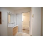 押入と廊下だった場所をリフォームして洗面台にしました。床のクッションフロアや壁・天井のクロスをホワイト系にする事で、全体を明るく清潔感のある空間にしました。