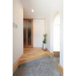 下駄箱傘立ては土間収納へ隠し、いつもスッキリした玄関になるようご提案しました。