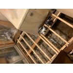 洗面室のため、既存フローリングからクションフロアに変更いたしました。所どころ床が落ちていましたので、根太からやり直しました。
