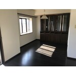 明るい茶系の床に、ブラック調のフローリングを上貼り。 落ち着いた重厚感のある雰囲気に変わりました。 さらに幅木を床と同系色に交換したことで、一体感が出ています。
