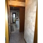 ダークブラウンのフローリングにベージュ系の壁と天井のクロスを貼っていました。