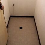 施工前の写真です。トイレの手洗い器のフチに黒い汚れ確認ができました。この黒い汚れの正体は「カビ」です。このカビをこのままにしておきますと、体に害を与えてしまうので早めの交換や対策が必要になります。