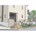 犬を飼っている方にお勧めしたいのが、ドッグポールです。価格重視の物から、デザイン性・機能性に優れた物まで、レパートリー豊かです。玄関先にあると、かなり便利だとういうお声を多数いただきます。そして今回の一番のこだわりは、天然石を使用した乱形石貼りの玄関アプローチです。石の色と、レンガの色を同系色に合わせて統一感を演出いたしました。
