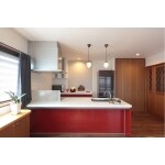 オープンでおしゃれなキッチンに合わせて、アクセントウォールや照明にもこだわりました。