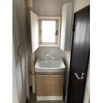 正面の窓に開閉式の鏡付き扉を造作し、毎日ストレスなく鏡を使えます。 また給湯器と接続することで、冬の寒い時期でも温かいお湯を使うことが出来るようになりました!