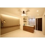 マンションは戸建住宅に比べて、窓が少なく、どうしても取り入れられる採光・空気の流れには限りがあります。また今回は、壁構造のRC造だったため、大きな間取り変更は難しい状況でした。そんな中でもどうすれば、限られた空間をより広く、より明るく、そして快適に過ごせる空間にできるのかを考えながら、ご提案させて頂きました。そして、お客様の理想のデザインを実現できるように、ご相談を重ねさせて頂きました。