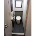 配線がごちゃごちゃしていてホコリが溜まり、ウォシュレットの操作パネルが邪魔で奥が掃除しにくいので掃除しやすいといれにしたい。 また、掃除用具をしまうところがないので収納がほしい。 入り口の段差も解消したい。