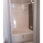 給湯器も新しくし、追い炊き加工をしました。 ドアは折れ戸にして、スペースを取らないようにし、ドア枠も白に変更しました。