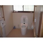 2室に分かれたトイレを撤去し、大きな空間にしました。入口も大きく開口できる扉に替え、将来の車イスでの使用も可能になりました。