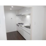 壁と合わせて真っ白なキッチンなので、白が際立ち、スッキリ広く感じます。