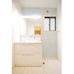 【新築】清潔感のあるブルーのクロスが素敵な洗面室