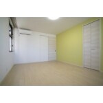窓の少ない部屋ですが、黄色のアクセントクロスを貼り分けた明るい洋室となりました。