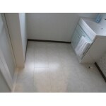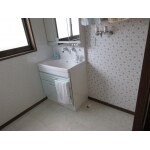 洗面化粧台もタカラスタンダードを採用しました。 こちらもホーローですので、マグネット収納も自由自在です。 床は明るい色にして、クロスも花柄のかわいい柄をお選びいただき、とても清潔感のある洗面脱衣室となりました。