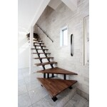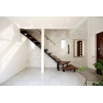 既存階段の勾配が急だったため、上り下りしやすい、ゆったりとした階段にするために、既存を壊し、新しくスケルトンの階段を設置しました。もともと階段下がトイレでしたが、狭く使いにくいということで、部屋内に移設することで、エントランス部分をより広く、高級感のある仕上がりになりました。