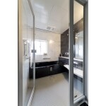 よくみられる日本の住まいとは異なるサニタリーは、トイレと洗面と浴室が同じ空間に。もちろん湿気を伴う浴室に扉はありますが、ガラス張りでオープンな雰囲気の浴室となりました。 壁付だったキッチンはL字のペニンシュラ・対面型になり、よくご両親のもとを訪れる娘さんたちと一緒に料理を作ったりホームパーティを開いたりとライフスタイルにあったものにいたしました。