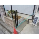 伸縮門扉をもう少し内側にたためるようにし、出入りの際、気にならないようにしましょう。 長さもある為、ストッパーも付け、固定キャスターも増やしたものにします。 花壇ブロックや門扉設置に関わる土間工事もご希望に合わせて行いますので、ご安心ください。