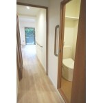 手すり設置に考慮して、壁を追加、寝室の引き戸や洗面室の出入りをロールスクリーンを活用するなど、ご提案をしました。