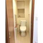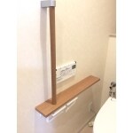 汚れが付きにくい新素材アクアセラミックのトイレで、きれいを保ちます。 棚手すり付きペーパーホルダーを設置したので、立ち座りがラクになり、小物も置けて便利です。
