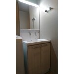 洗面化粧台は、ミラーキャビネット内に収納できるタイプを設置しました。 見た目もスッキリし、ホコリや汚れをかぶりにくくなりました。