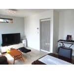 コンパクトなLDKとなるため、床材や、スリット引戸などをホワイト系でまとめ、空間に広がりを持たせます。