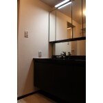 洗面化粧台自体をオーダー寸法で作成、壁から壁までぴったり入る商品をご提案しました。色味自体も部屋の雰囲気と合ってるデザインにしました。