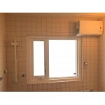樹脂窓のFIX窓と縦辷り出し窓が並んだ窓になりました。 しっかりと換気もでき、明るさも保つことができます。 壁掛けの浴室暖房機の効きもグンと良くなることでしょう!