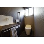 トイレも、もともと背面に設備壁があり少し狭かったのを取り払い、広い空間を確保しました。 H様お気に入りの泡の洗浄があるPanasonicのアラウーノを、自動水栓の手洗い付きでご採用頂きました。