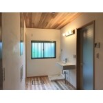 リビング同様の床、壁、天井にし、壁はご自分で漆喰を塗りたいというご要望です。また、洗面器も、E様のお好みのものを設置したいというご要望でした。