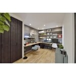 2階を寝室にしてプライベートを分け、1階に仕事部屋とLDKを配置。リビング隣の6帖の和室を広い書斎コーナーに変更し、LDKと一体化しています。自由なポジションで仕事を進められるよう壁2面を使ってデスクと棚を造り付け、モニターが見えにくくならないよう窓、照明を工夫して落ち着いた色合いで仕上げました。解放感を出すこととと、食事や飲み物をスムーズに用意できるようにするために、独立型の壁付けキッチンを対面キッチンへとレイアウト変更。広々としたLDKを実現しました。残す柱と鉄骨で補強した壁を適所に配置し、耐震強度も向上。長く、安心して過ごしていただける住まいとしています。