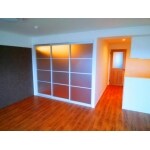 クリヤーパネルパーテーションを開け放つと、間接照明とダウンライトが美しい洋間です。