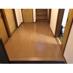 お母様がご使用になるとのことでしたので、トイレはバリアフリー仕様に床のかさ上げ、手すりの新規設置もご提案させて頂きました。 廊下は床下地の補修後、フローリングの上貼りにてご提案しました。 リビングはエアコンの電源新規引き込み。天井はボードを上貼りして新規ビニールクロス、壁もビニールクロスの貼り替えで明るくなるようにご提案しました。
