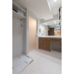 S様お気に入りのパナソニックラシス。ホテルライクと言えば、広く大きな一枚鏡。高級感だけではなく、空間に広がりが生まれますね。扉はベリティス木目柄:チェリー柄をお選びになりました。