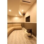 R形状の壁を活かし大勢がゆったり座れるようプランニングしました。テレビを壁に埋め込みにしたり、天井もRで作りこんだりと、細かいところにもこだわっています。