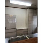 20年ほど前のキッチンでした。キッチン廻りがタイル張りで、レンジフードも掃除のしにくいものでした。