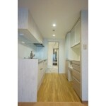 キッチン天井は高さがいらないところでしたので、キッチン上をロフトとして利用しました。ロフトを支えるために壁面と天井を補強しているために、キッチンの配管のやり直しやレンジフードの選定をしました。