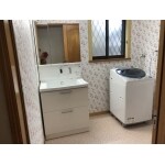 古くなり収納力がない洗面台を交換したい。壁紙がカビていて、床も貼り替えたい